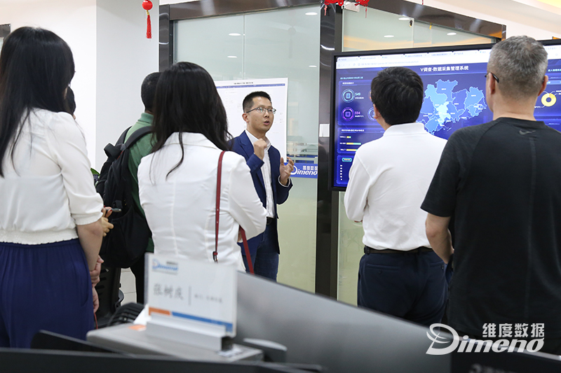 维度数据科技总经理商黄鹤、产业集群总监熊涛、天维大数据总监裴来辉及相关负责人陪同参观座谈。在天维大数据中心,于炳波一行了解并观看了维度数据科技自主研发的数据智能管理平台、经济运行监测平台等大数据产品及行业解决方案,对维度数据科技助力政府数字化转型的优秀经验和探索给予了高度评价与赞赏。