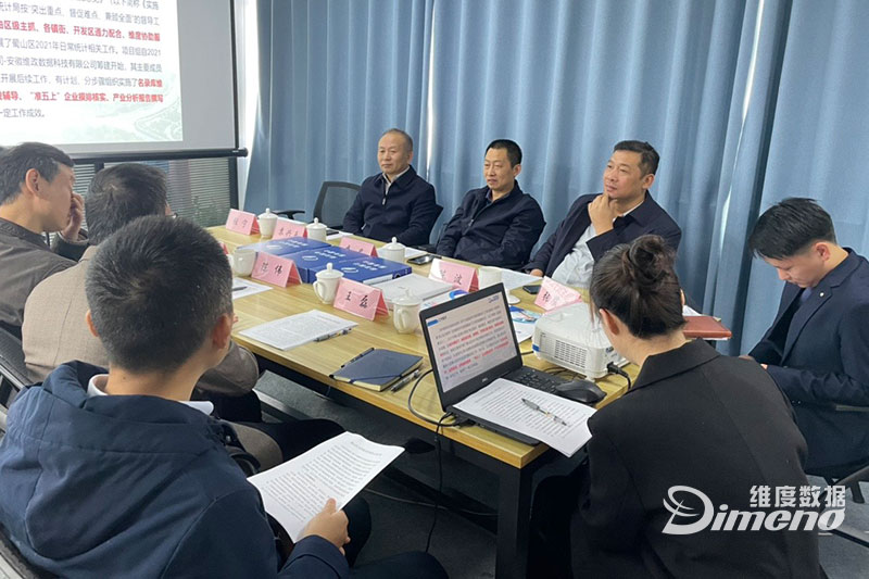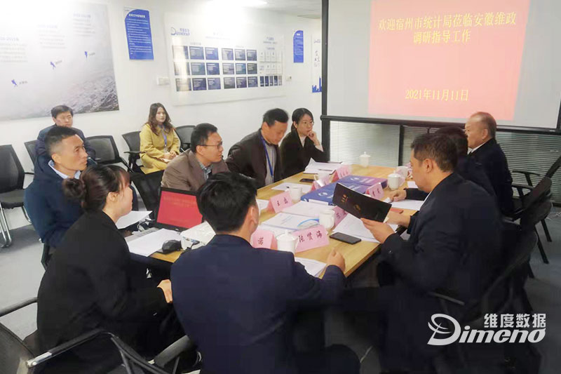 11月11日上午,安徽省宿州市统计局副局长李昊、宿州市统计局普查中心主任陈波、埇桥区统计局局长苏兴乐等一行莅临深圳市维度数据科技股份有限公司(以下简称“维度数据科技”)全资子公司——安徽维政数据科技有限公司(以下简称“安徽维政”)就蜀山区统计外包服务工作进行调研指导。合肥市统计局副局长陈伟、蜀山区统计局副局长王磊等人一同到访。