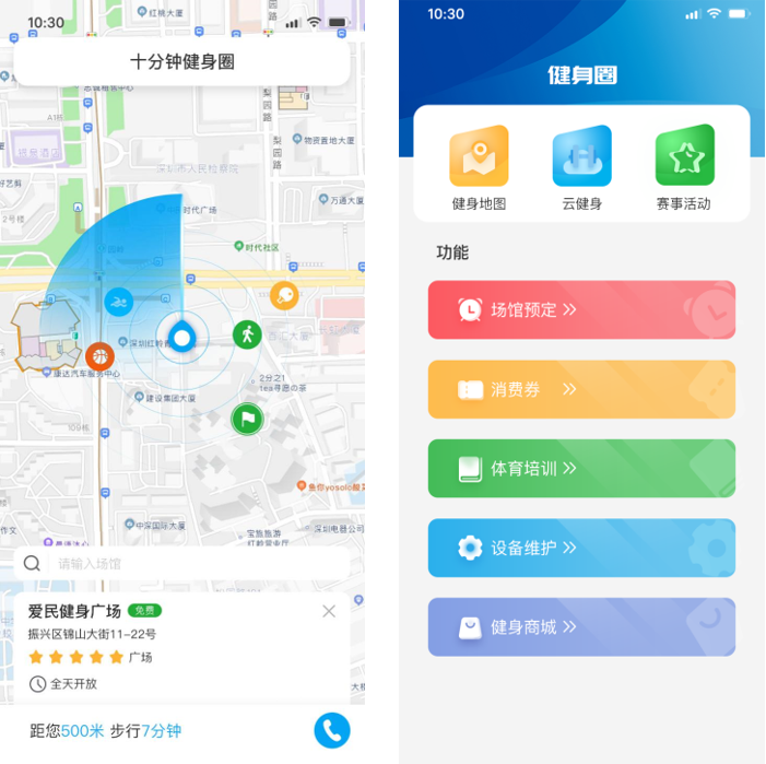 项目主要涵盖健身地图(10分钟健身圈)、云健身、场馆预定、赛事活动、消费券、体育培训、设施维护和健身商城等场景,旨在解决市民就近健身的问题,提升健身的便利性;还可以实现场馆预定及优惠信息查询,高效利用社会资源;此外,赛事活动、优惠券、体育培训、设施维护等功能板块可助力政府推进全民健身智慧化服务。