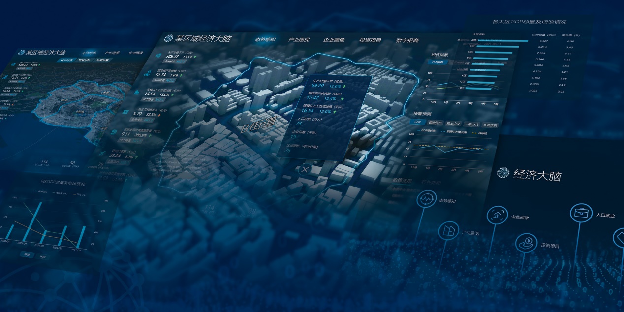 为了满足智慧城市建设对数据价值的需求,维度数据科技打造全新智慧应用平台——经济大脑,在基于大数据、云计算、人工智能等新技术和经济统计算法模型,依托智慧统计引领、经济态势感知、产业形势透视、企业画像分析、投资项目监测、人才就业洞察、数字精准招商等应用,从宏、中、微观全维度刻画、解构、剖析经济问题,打造智慧统计“灯塔”、经济监测“摄像头”、经济预测“望远镜”、经济决策“指南针”,成为党政领导宏观调控、科学决策的“外脑”和智库,助推城市经济高质量可持续发展。