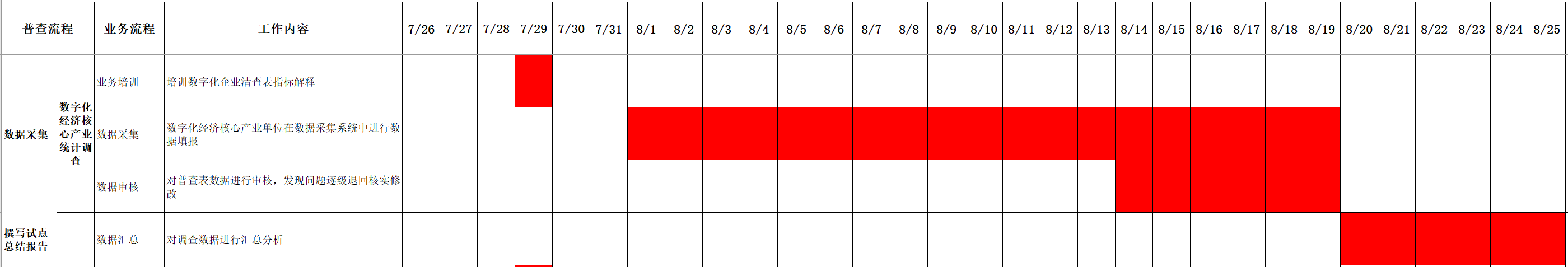 为贯彻落实“五经普”数字经济核心产业统计调查工作质量要求,维度数据科技实施挂图作战计划,就业务培训、数据采集、数据审核、数据汇总和试点成果撰写等工作倒排工作计划,明确时间节点,加强数字经济核心产业统计调查专项试点工作全流程管理。结合当地数字经济发展规模与结构,协助企业如期如质完成数字经济核心产业的标识认定和分项收入数据分解。